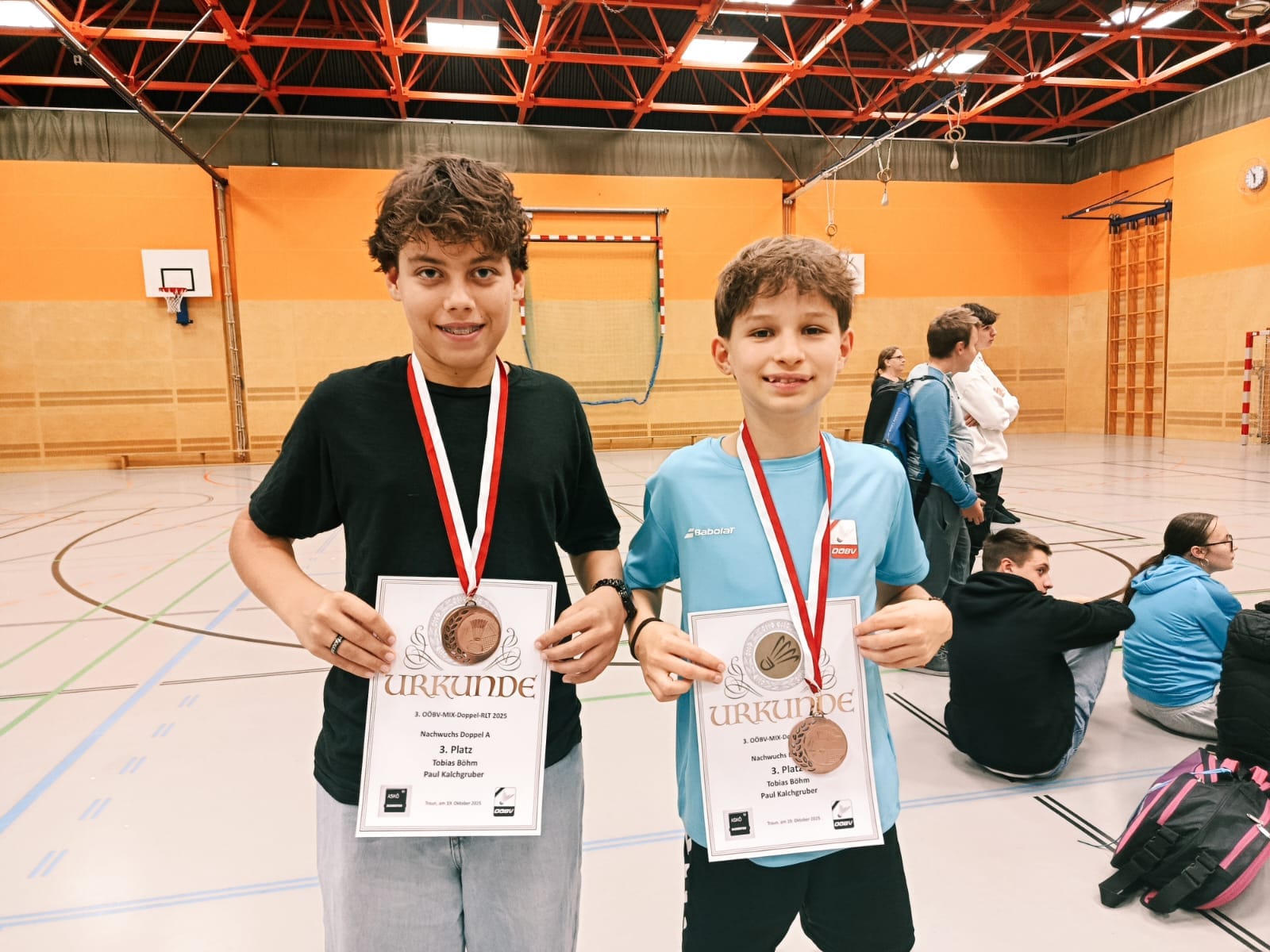 Ein weiteres Highlight des Sonntags war das 4. OÖBV-MIX-Doppel-RLT. Der ABV Wels war hier in nahezu allen Bewerben vertreten. Im Nachwuchs-A-Bewerb traten Marcel und Tobias Boehm mit ihren Doppelpartnern Alexander Ertl und Paul Kalchgruber (beide Union Neuhofen) an. Dabei erreichten Marcel & Alexander den 6. Platz. Tobias & Paul mussten im Halbfinale eine Niederlage einstecken, erkämpften sich dann aber noch den 3. Platz. Gratulation!