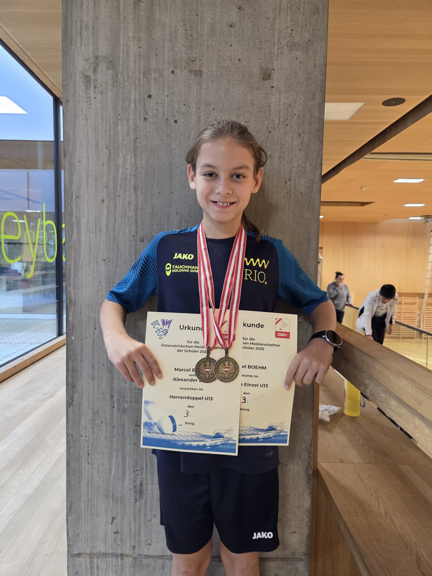 Auch Marcel ging in den U13-Bewerben an den Start. Im Mixed-Doppel war auch für ihn mit seiner Partnerin Wei-Chien Chan (Europajugend Gleisdorf) schon nach der ersten Partie Schluss. Im Doppel sah es da deutlich besser aus - Marcel zog mit seinem Partner Alexander Ertl (UBC Neuhofen) nach einer äußerst spannenden 3-Satz-Partie ins Halbfinale ein. Dort wartete allerdings die Doppel-Paarung, die schon Max am Vortag zum Verhängnis wurde. Auch hier zogen wir wieder den Kürzeren - konnten aber über den 3. Platz jubeln. Im Einzel kam Marcel souverän ins Viertelfinale, wo er gegen den Zweitgesetzten in einer spannenden Partie gewinnen konnte. Im Halbfinale am nächsten Tag war allerdings Schluss - wir gratulieren herzlich zu den zwei Bronze-Medaillen!